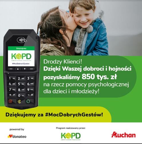 Auchan od lat aktywnie działa na rzecz potrzebujących dzieci, a klienci chętnie włączają się w tę pomoc, o czym mieliśmy okazję przekonać się wielokrotnie. Tak było i tym razem, gdy w grudniu i styczniu zaprosiliśmy naszych klientów do wsparcia Komitetu Ochrony Praw Dziecka i zebrania funduszy na pomoc dzieciom i młodzieży w kryzysie psychicznym. Cieszymy się, że dzięki aplikacji Donateo, po raz kolejny mogliśmy pomóc – mówi Inga Szaniawska, koordynator CSR Auchan Retail Polska.