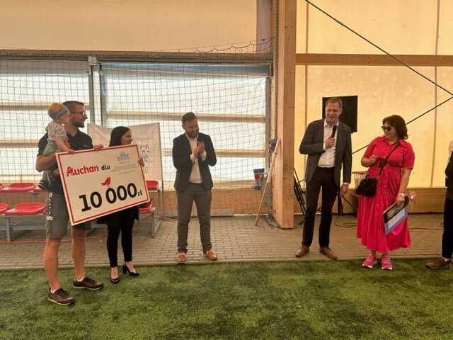 10 000 zł dla dzieci zebrano podczas akcji “Tour de serwis wsparcia” zorganizowanej przez pracowników centrali Auchan w Piasecznie w maju 2023 r.