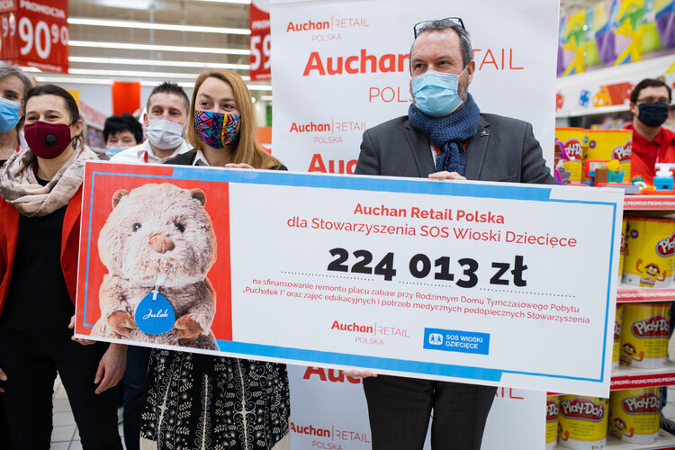 Ze Stowarzyszeniem SOS Wioski Dziecięce Auchan Retail współpracuje zarówno w Polsce jak i w innych krajach. Od 2009 roku sieć wielokrotnie zbierała środki dla podopiecznych SOS Wiosek Dziecięcych sprzedając charytatywną maskotkę - misia lub kartki świąteczne. Dodatkowo, dwa projekty zgłoszone przez SOS Wioski Dziecięce w Polsce zostały dofinansowane przez Fundację Auchan na rzecz młodzieży.