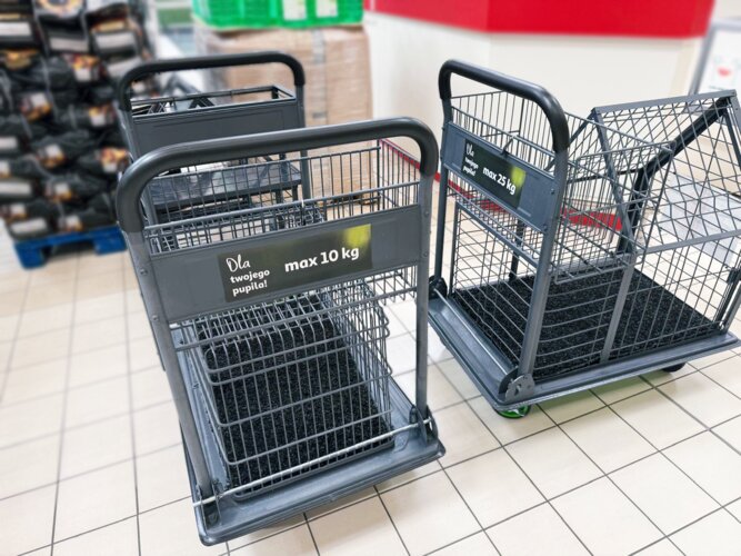 Wózki dostosowane do przewożenia psów wdrożone zostały obecnie w trzech hipermarketach Auchan: Komorniki, Swadzim i Bukowska w Poznaniu. Dostępne są w dwóch opcjach dla zwierząt ważących do 10 i do 25 kg. Co ważne, po każdym użyciu wózka jest on dezynfekowany, czyszczona jest również mata, którą wózek jest wyściełany.