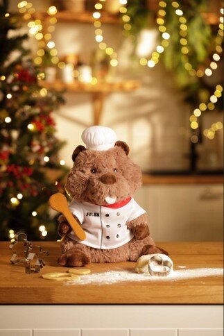 Wyprodukowany w 90% z poliestru pochodzącego z recyklingu plastikowych butelek Bóbr Julek wciela się w postać Szefa kuchni. Maskotka dostępna jest we wszystkich sklepach Auchan, można ją również kupić poprzez platformę zakupy.auchan.pl