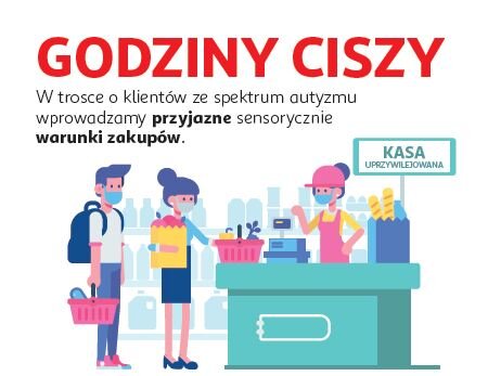 Bodźce towarzyszące zakupom w marketach – dochodzące z każdej strony ostre dźwięki i jasne światło – powodują silny dyskomfort u osób ze spektrum autyzmu. Mając na uwadze szczególne potrzeby takich klientów, w 2019 roku Auchan we współpracy z Fundacją Daj mi czas, działającą przy Zespole Szkół Specjalnych w Częstochowie zainicjował projekt Godziny ciszy. Jego celem jest stworzenie kupującym ze spektrum autyzmu możliwości robienia zakupów w przyjaznym sensorycznie środowisku. Od 8 września br. Godziny ciszy obowiązują w całej sieci Auchan we wtorki w godzinach 15:00-17:00. W tym czasie sklepy starają się wyeliminować wszystkie źródła dźwięku i ograniczyć natężenie oświetlenia. Akcja jest realizowana we wszystkich sklepach Auchan w Polsce, jako jeden z elementów działań firmy na rzecz lokalnych społeczności.