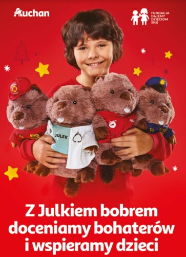 Z Julkiem Bobrem wspieramy dzieci i doceniamy bohaterów − to hasło drugiej edycji przedświątecznej akcji charytatywnej Auchan Retail Polska, której bohaterem jest pluszowy Bóbr Julek. Akcja rozpoczęła się 18 listopada i potrwa do 24 grudnia br. Całkowity dochód ze sprzedaży każdej maskotki przekazany zostanie na wsparcie 116 111 − telefonu zaufania dla dzieci i młodzieży prowadzonego przez Fundację Dajemy Dzieciom Siłę. W tym roku maskotka staje się lekarzem, strażakiem, policjantem i pracownikiem sieci Auchan. W ten sposób sieć docenia przedstawicieli zawodów społecznie użytecznych, których działania były szczególnie istotne podczas ostatnich miesięcy pandemii.