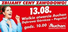 13 sierpnia o godzinie 10.00 nastąpi otwarcie Auchan w Dąbrowie Górniczej w Centrum Handlowym Pogoria! 20 tysięcy produktów o obniżonych cenach, koszyk klienta tańszy o 20%! To drugi sklep w Polsce, który powstaje w wyniku integracji sieci Real przez Auchan, a 31 działający pod szyldem Auchan. ...